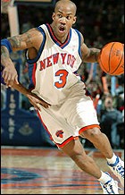 Starbury has played to his full potential this season, averaging 20.8 points per game while Eisley and Ward (the previous guards for the Knicks) averages 15.4 combined! Marbury brings an explosive speed and agility, smart play making abilities, and pure talent to the Knicks. Some of the Knicks' problems are free throw shooting filling the point guard position. In the first half of the season the Knicks got to the free throw line less than any other team in the NBA. Because of his Flash-like moves to the basket, Marbury makes plays and draws fouls on a regular basis. As a 79.5% free throw shooter, Marbury will increase the Knicks points. Compared to Eisley's 1.1 attempts per game and Ward measly 0.6 Marbury stands out as the big solution to some of the teams many issues on the court.