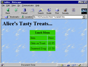 <TD ALIGN="center" COLSPAN=2><B>Lunch Menu<B></TD>