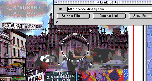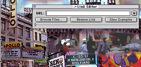 Next, drag the mouse around the 'Hot Area' on the image that you want to be a link. Once you let go of the mouse, you'll see the Link Editor at which point you'll want to either use the Browse Files.. button to link to a web page on the site, or write in the URL for a web site elsewhere on the World Wide Web.