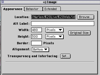 Double click on the image and you'll see the following dialog box if you are using Claris Home Page 3.0: Click on the Behavior Tab.