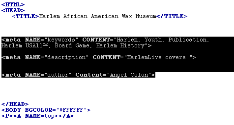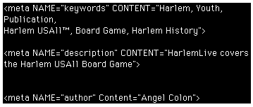 Now you have space to put your Meta Tags. We have already created most of the Tags for YOU!!!!. You can find them in the HarlemLive folder. Inside that folder is a Meta Tags clipping