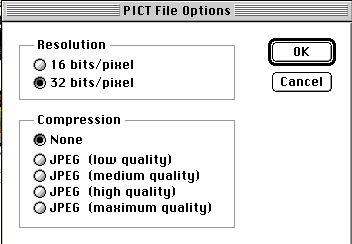 You'll be asked to select resolution and compression. Select 32 bits and None. and then click OK