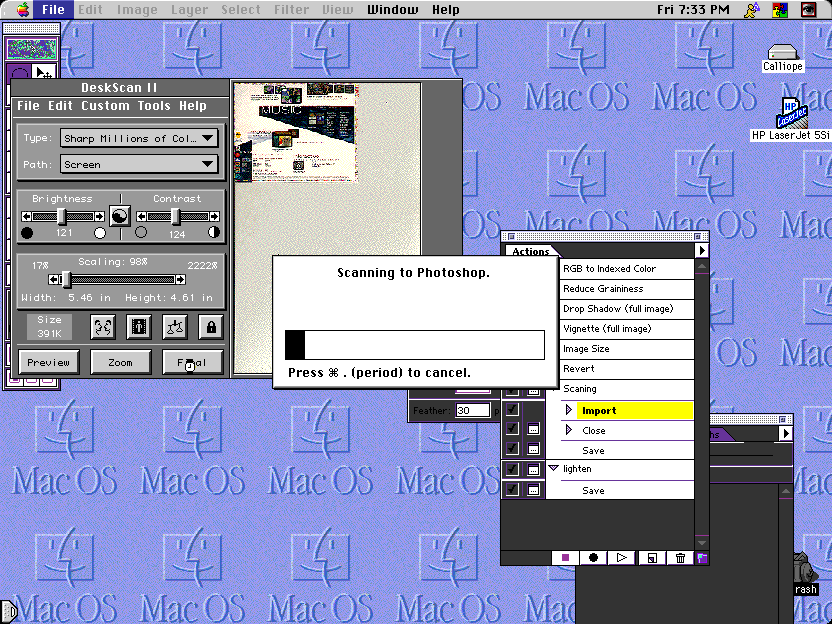 Go to the computer connected to the scanner (Mac 6500, called Calliope) and open Adobe Photoshop: