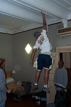 And the bet... (could Oba touch the ceiling) was completed.. yes he could touch the ceiling.. well at least part of it.