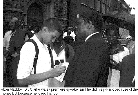 He was happy with his achievements as a teacher at Cornell University and at Hunter College for his work on African and Puerto Rican Studies. He made an early commitment to transfer his library to Black Institutions in an effort to demonstrate his unlimited trust and respect to the black community; where he has donated a majority of his books and documents. With his work in the Schomburg Library many hope that they can reveal their true history and uncover the lies. Dr. John Henrik Clarke touched many lives with his works and so they attribute him with documentaries like John Henrik Clarke- a Great and Mighty Walk (Produced by Wesley Snipes). This is one of many documentaries that help African-Americans and others to understand the past. Dr. Clarke always assured his mission had been to deliver a message of renewal, redemption and rededication for young people all over the world and hopes the walk has afforded him that claim. ![]() Comments: Michael Blanco: After I read all these quotes, articles, about Dr. Clarke from his pamphlet I now know he was an important man to his people and community. It was great loss to many. Michael Flowers: I think that the reception was a great event. Lots of people came out to pay their respects to Dr. Clarke and from what I saw a lot of people admired their doctor. Dupree Phillips: I think that Dr. Clarke was a big influence on many people specifically blacks. Many people said he was a good teacher, and a good role model. Jed Boikai: I learned that Dr. Clarke was a positive man. He was a mentor and a father to all. Everyone will always remember him for his great deeds.