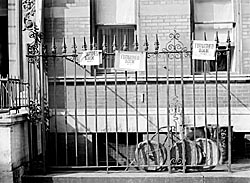 Who's bike is that in front of the building? |