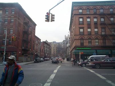 The Sugar Shack Restaurant, with the Neon green sign on 139th Street, right near Strivers' Row area