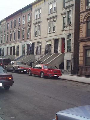 Indicative of the rejuvenization of Harlem, a man installs a new light fixture to the front of a building on West 139th Street