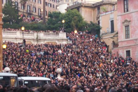 These are the Spanish steps. They dont always look like this. On this day the steps and the streets were flooded with people. They were all waiting in anticipation to see the