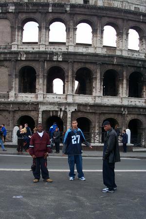 Enita, Oscar, and Melvin (from left) posing in front of the Colosseum