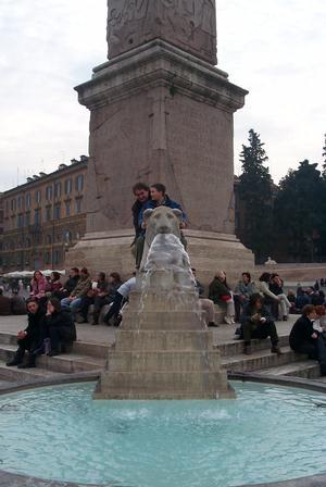 Fountain of egyptian lions at the bottom of the egyptian obleisk in Piazza Del Popolo